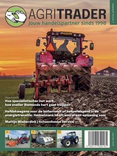 Het Agri Trader Magazine, al 25 jaar een begrip! In het magazine draait het om machinehandel voor de klus op het land, in de tuin en in de bouw. Wij gaan eropuit om alle handel voor je in kaart te brengen, en dat allemaal in levendige kleuren, elke maand bij jou op de mat. Als je van het vak houdt, mag je dit niet missen!